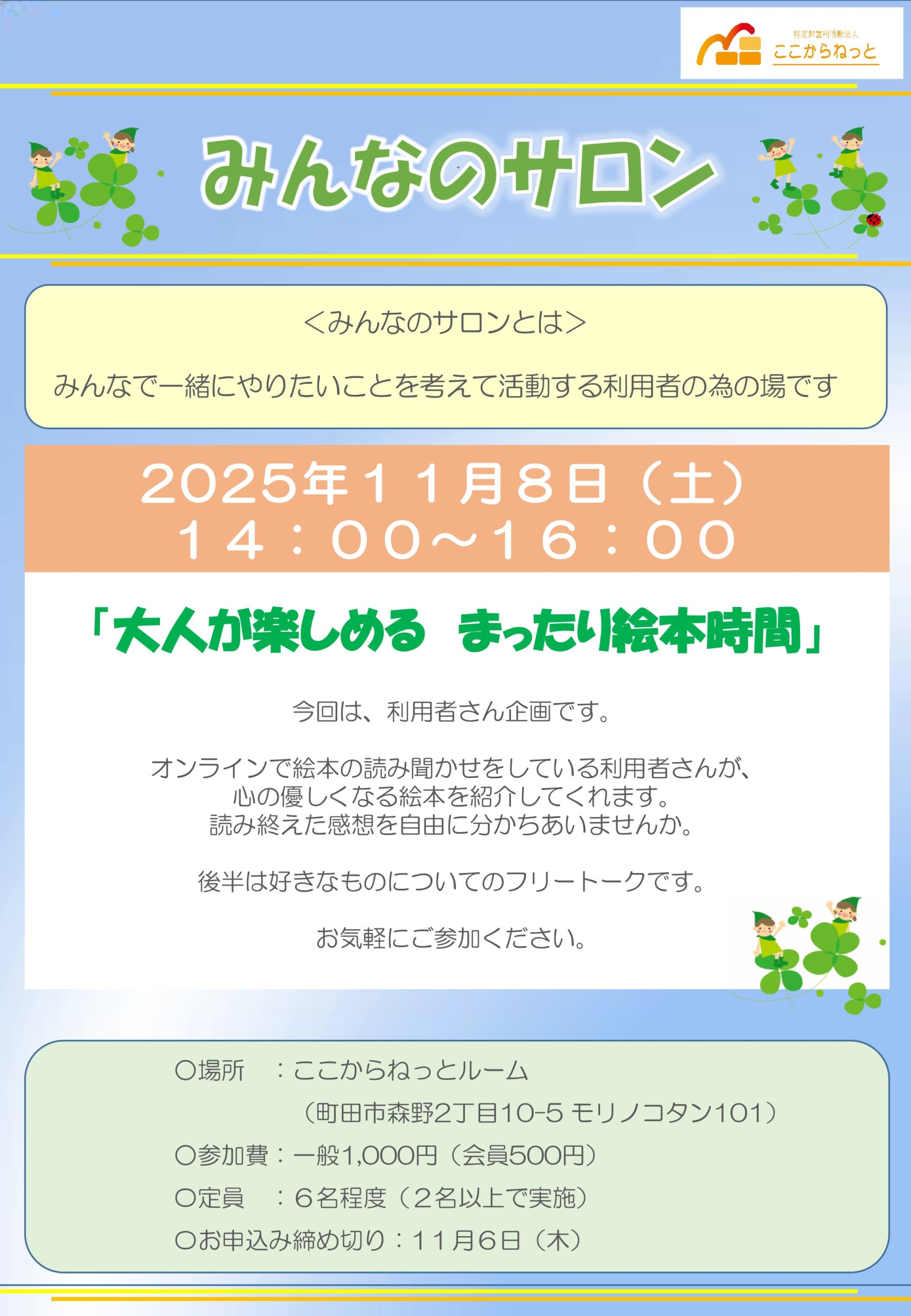 「大人が楽しめる まったり絵本時間」今回は、利用者さん企画です。