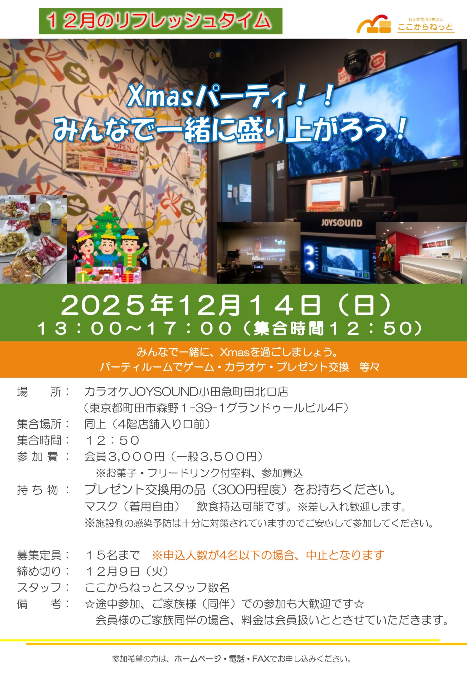 ●12月のリフレッシュタイムは、Xmasパーティ ゲームや歌を唄って盛り上がろう!です。